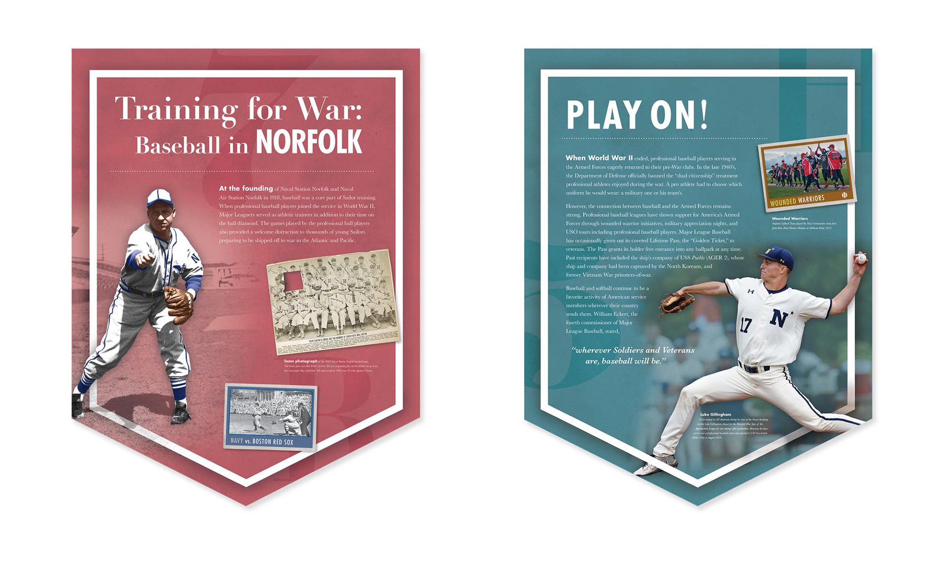 "Playball" portrays the rich history of the U.S. Navy's part in baseball from all corners of the world. This exhibit for the National Museum of the United States Navy was a collaborative project working with two other museums within the Navy command. It opened to the public during the week of the 2018 All Star game in Washington D.C.